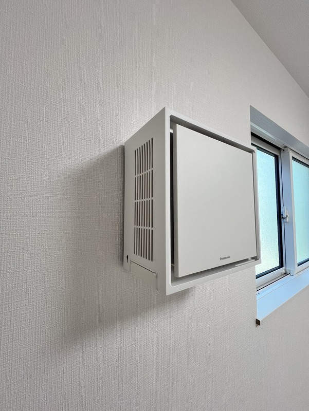 【熱交換気システム】室内の空気を外に排出する際に、その熱および湿度を回収し、外気に受け渡します。窓を開ける換気のように室温が急激に下がるのを防ぎ、冷暖房の負荷を軽減します。※10/30撮影