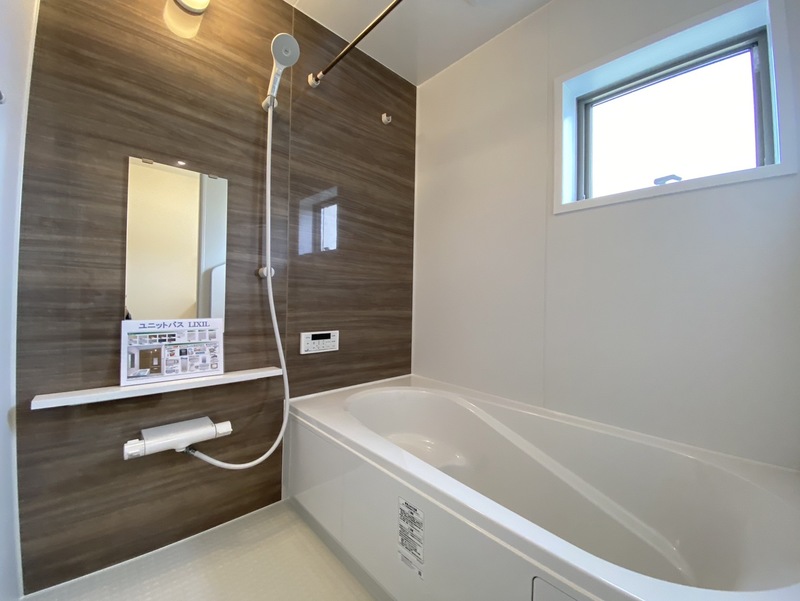【浴室】上質が感じられるカラーリングで、清潔な空間美を実現。一日の疲れが癒される優雅なバスタイムを堪能できるバスルーム。断熱効果の高い浴槽は温度変化が少なく、追い炊き時間も短く済みます。※施工例