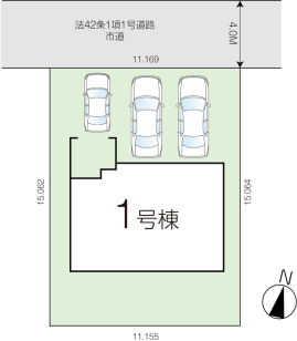 1号棟 敷地面積:168.14㎡(50.86坪) / 建物面積:113.85㎡(34.43坪) / 4090万円(税込)