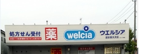 ドラッグストア ウエルシア越谷東大沢店まで448m 徒歩6分 地域のお客様の豊かな社会生活と健康な暮らしをサポートできるドラッグストアの実現のため、「調剤併設」、「カウンセリング」、「深夜営業」及び「介護」を軸としたドラッグストアを積極的に展開しております。