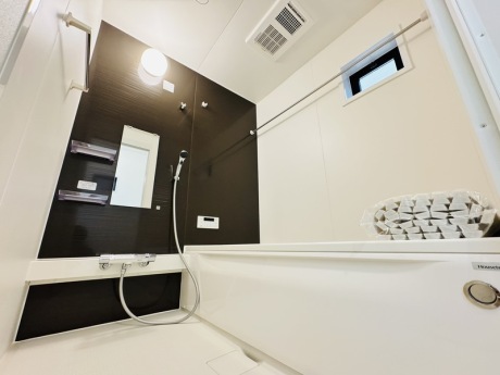 【浴室】ご家族との憩いの場として、一日の疲れを癒す場として、ゆったりと足を伸ばしてくつろげる綺麗で清潔感のある浴室。浴室には浴室暖房乾燥機を装備。雨の日も気にせず洗濯物を乾燥させられます♪※9/22撮影