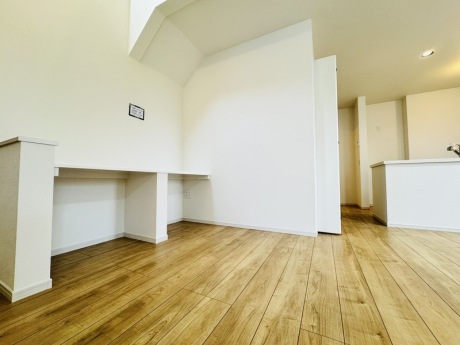 【スタディカウンター】リビングに設置された「スタディーカウンター」は、お子様の勉強やテレワークなど、多用途にご使用いただけます。お子様は安心しながらお勉強ができます。※9/22撮影