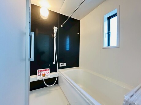 1号棟【浴室】換気暖房乾燥機、窓付きで明るいバスルームで一日の疲れを癒す快適な空間を。足を伸ばしてリラックス。お子様と並んで体を洗ってもゆとりがあります。さらに楽しくお過ごし頂けます※1/13撮影
