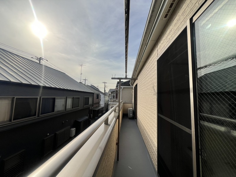 【ワイドバルコニー】バルコニーで季節モノや布団などの洗濯物も一気に干せますね♪2つの洋室から出入りできるバルコニーは使い勝手が良く、洗濯物やお布団を干すのもラクラクです。陽当たりも良好♪※1/15撮影