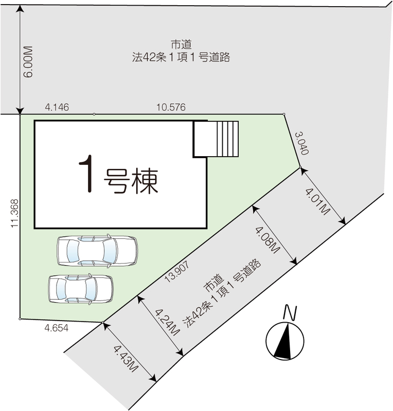 | 地目 | 宅地 | 接道状況 | ≪公道≫西側約6m / 南東側4.08m |