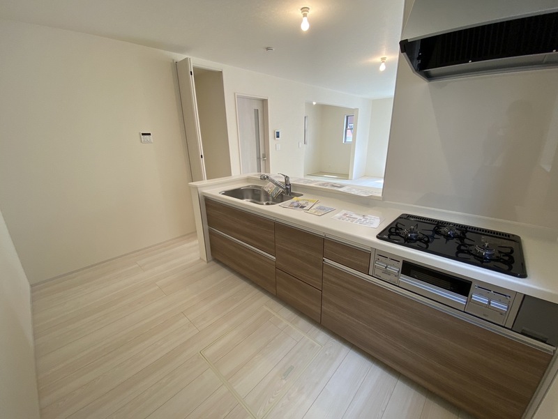 【キッチン】ご家族との会話が楽しめる対面タイプを採用。リビングで遊ぶお子様の様子を伺いながらお料理もできます。休みの日にご家族みんなでお料理を楽しめ、オープンタイプなら開放感もいっぱいです。※施工例