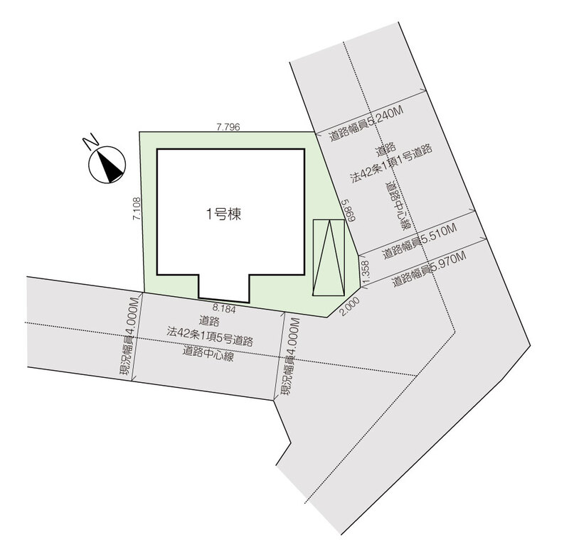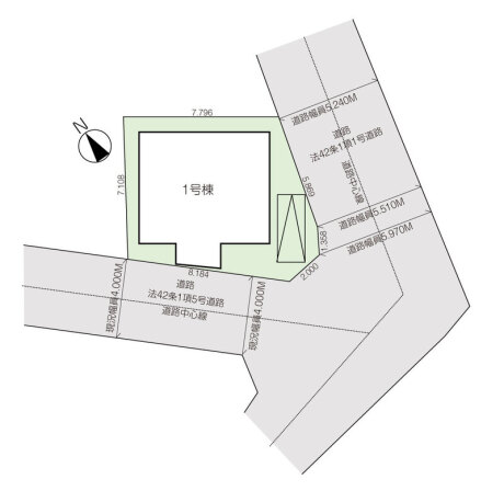 | 地目 | 宅地 | 接道状況 | ≪公道≫南西側4.0m ≪公道≫南東側5.2m |