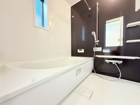 【浴室】1坪タイプの浴槽。お湯が冷めにくい断熱性の高い浴槽を採用しています。ゆったりとして落ち着きのある浴室は、日々の疲れを取る癒しの空間です。換気暖房乾燥付ユニットバスで快適な生活を※施工例